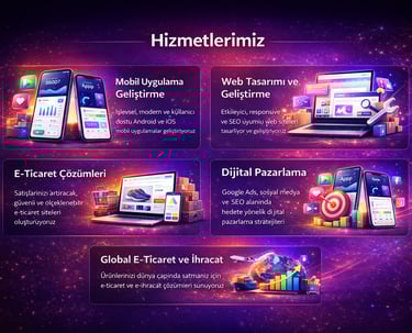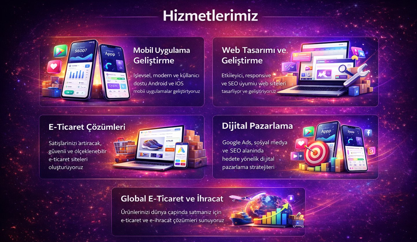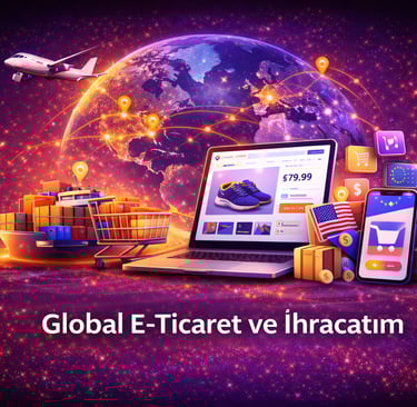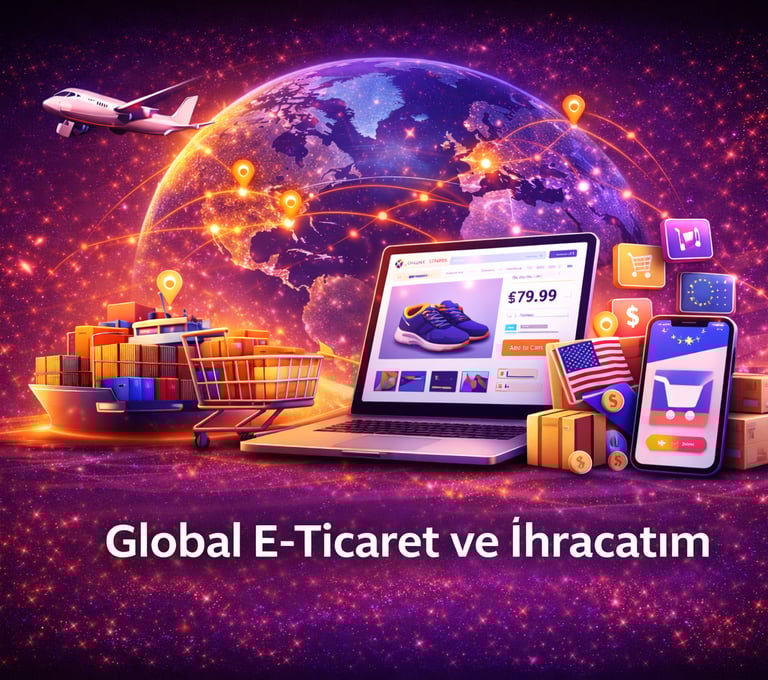 Global e-ticaret ve ihracat çözümlerimiz ile ürünlerinizi yalnızca yerel pazarda değil, dünya genelindeki müşterilerle buluşturmanızı sağlıyoruz. Uluslararası satış altyapıları, pazaryeri entegrasyonları, ödeme sistemleri ve lojistik çözümlerle markanızı global ticarete hazır hale getirirken; doğru pazar analizi ve dijital pazarlama stratejileri sayesinde satış potansiyelinizi artırıyoruz. Amerika, Avrupa ve diğer hedef pazarlara yönelik ölçeklenebilir e-ticaret sistemleri kurarak operasyonlarınızı kolaylaştırıyor, rekabet avantajı elde etmenizi ve sürdürülebilir ihracat büyümesi yakalamanızı destekliyoruz.