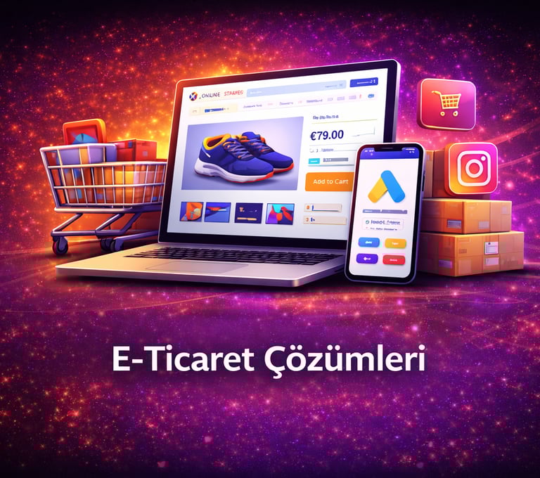 E-ticaret çözümlerimiz ile markanızı dijital satış kanallarında güçlü ve sürdürülebilir bir yapıya kavuşturuyoruz. İşletmenize özel tasarlanan modern e-ticaret siteleri, mobil uyumlu arayüzler ve güvenli ödeme altyapıları sayesinde ürünlerinizi hem yurt içi hem de global pazarlarda kolayca satışa sunmanızı sağlıyoruz. Sipariş yönetimi, kargo entegrasyonları, pazaryeri bağlantıları ve gelişmiş yönetim panelleri ile operasyonlarınızı hızlandırırken; dönüşüm odaklı tasarım ve performans optimizasyonları sayesinde satışlarınızı artırmanıza destek oluyoruz. Markanızı büyüten, ölçeklenebilir ve rekabet avantajı sağlayan profesyonel e-ticaret altyapıları sunarak dijital ticarette güçlü bir konum elde etmenizi sağlıyoruz.